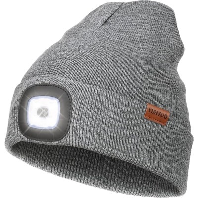 YunTuo LED Beanie with The Light, Unisex USB Rechargeable Headlamp Winter Knitted Cap Gifts for Men Dad Husband Him